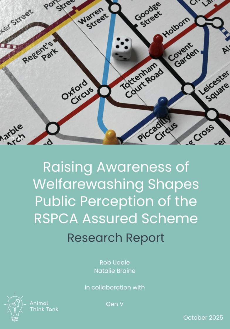 This study tested six London Underground adverts designed to expose welfare washing and challenge trust in animal welfare labels like RSPCA Assured. The findings offer practical insights for campaigners, creatives and strategists on how to communicate about misleading welfare claims in ways that prompt reflection, build trust, and invite action.